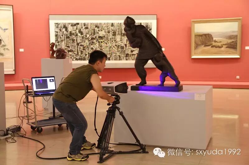 ▼宇达集团3D打印中心工作人员正在中国美术馆现场扫描《轰炸》作品原作